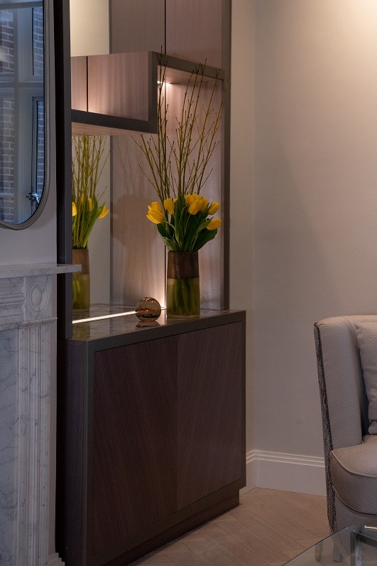 Refurbished spacious flat based on client’s love of wood – joinery and flooring. Two fun features that stand out are a fireplace that was in the shape of a copper bowl; as well as the bathroom that was designed with a waterfall effect panel beside the bathtub with fibre optic lighting.