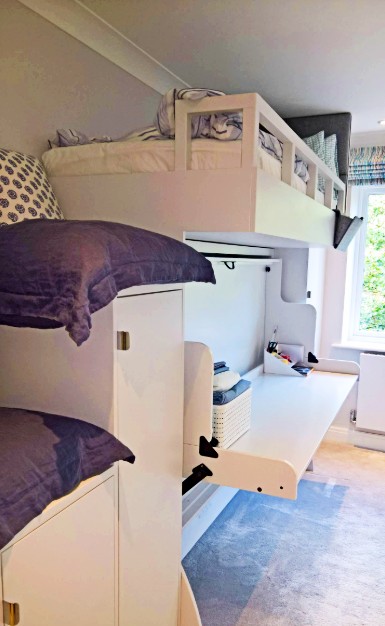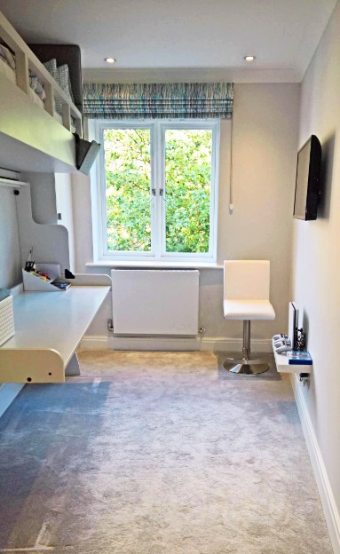 Warm and welcoming, elegant, bold colours, contemporary kids bedrooms were the requirements of a father of 4.